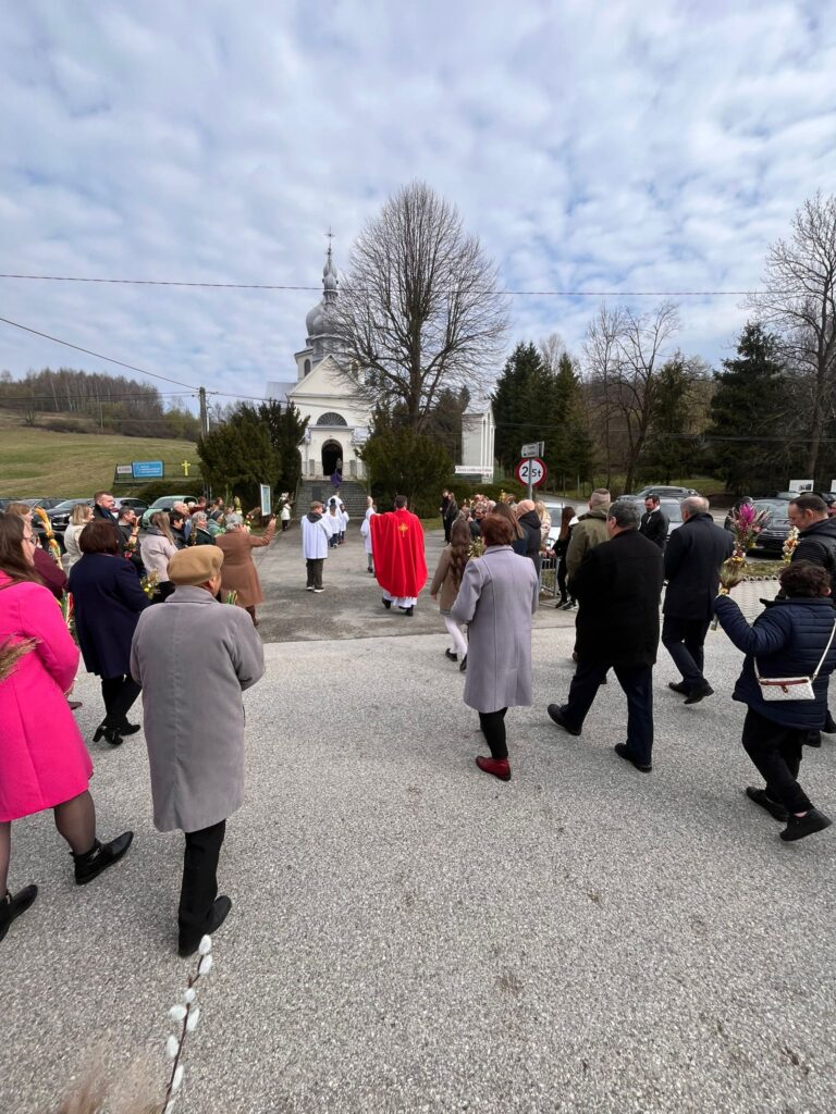 W minioną Niedzielę Palmową uroczyście rozpoczęliśmy Wielki Tydzień. Msze św. zgromadziły wiernych o godz. 8:00 i 11:00. Podczas obu Eucharystii odbył się obrzęd poświęcenia palm – rano w kościele, a o godz. 11:00 przy krzyżu upamiętniającym starą, drewnianą cerkiew. Następnie wyruszyliśmy w procesji z palmami do kościoła, wspólnie przygotowując się na nadchodzące święta Paschy.